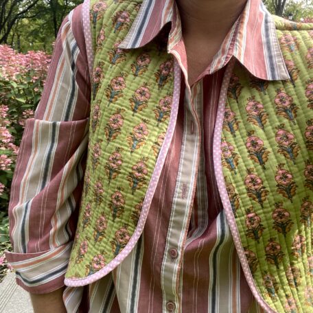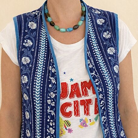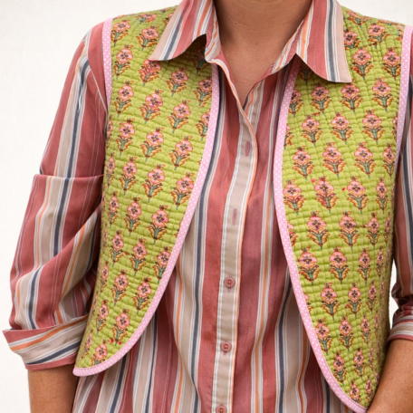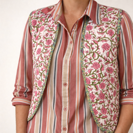 Vêtements en tissus indiens, confection artisanale. Matières naturelles et motifs traditionnels.