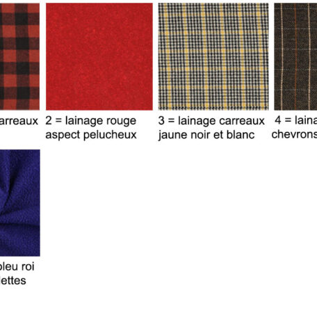 3 = carreaux jaune noir et blanc (mélange polyester et laine)
