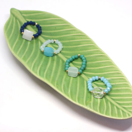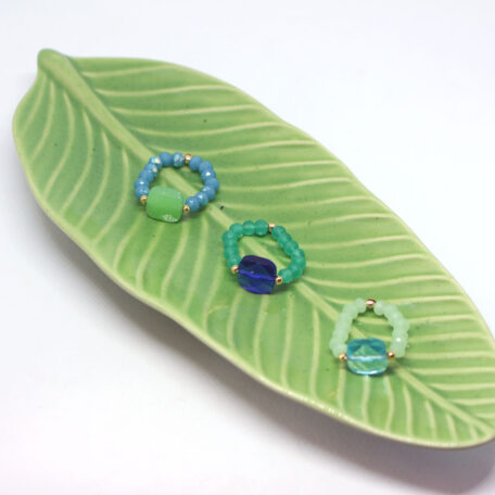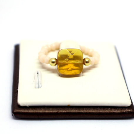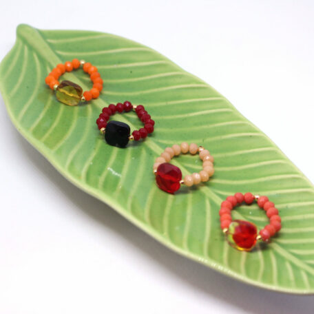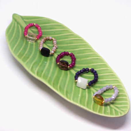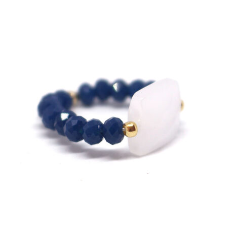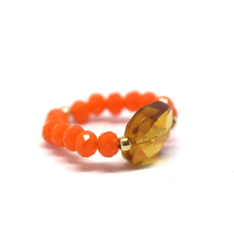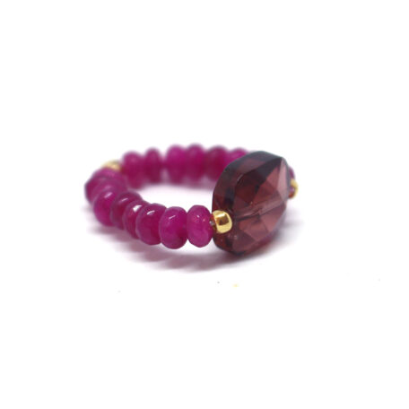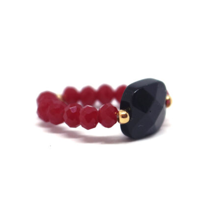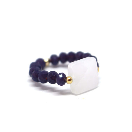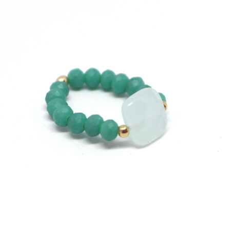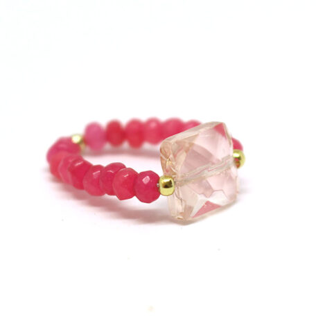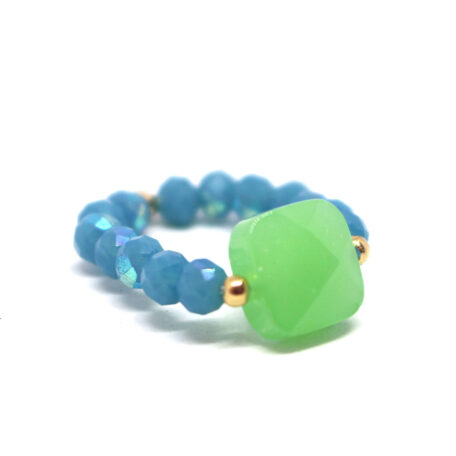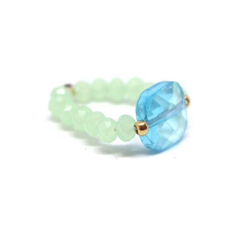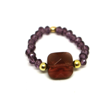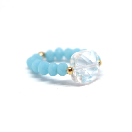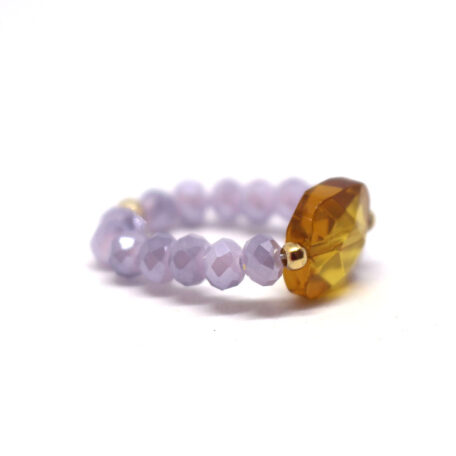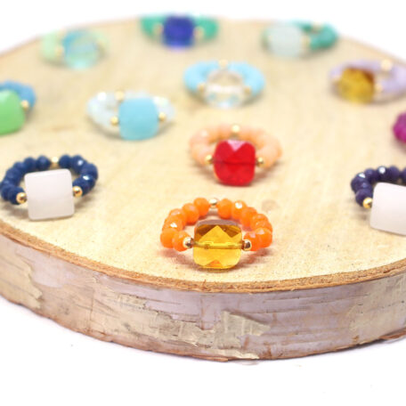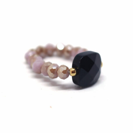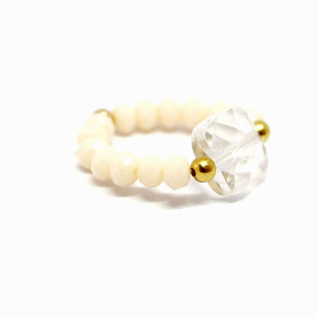 ♦ Bague minimaliste montée sur élastique et composée de perles de verre à facettes