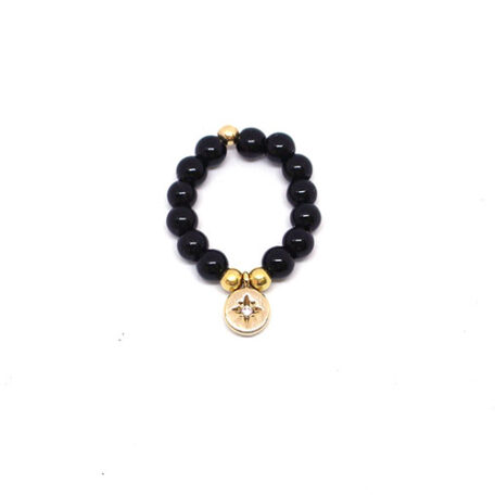 ♦ Petite breloque ronde dorée à l’or fin et onyx noir.