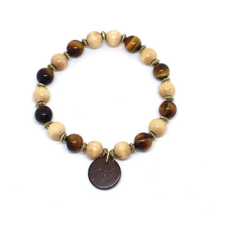 Bracelet bois et oeil de tigre TARA