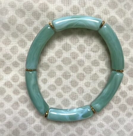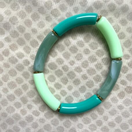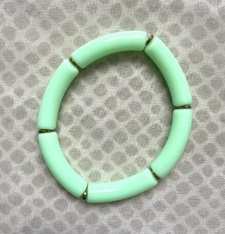 Laissez parler la douceur avec ce jonc élastique en résine, aux nuances délicates de vert clair, bleu ciel et écru. Ce bracelet tube aux tons pastel apporte une touche de fraîcheur et de lumière à votre style, tout en restant discret et raffiné.