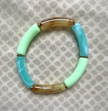 Ce bracelet ultra tendance, en perles de résine acétate, est l’accessoire à avoir de toute urgence et à superposer sans modération !
