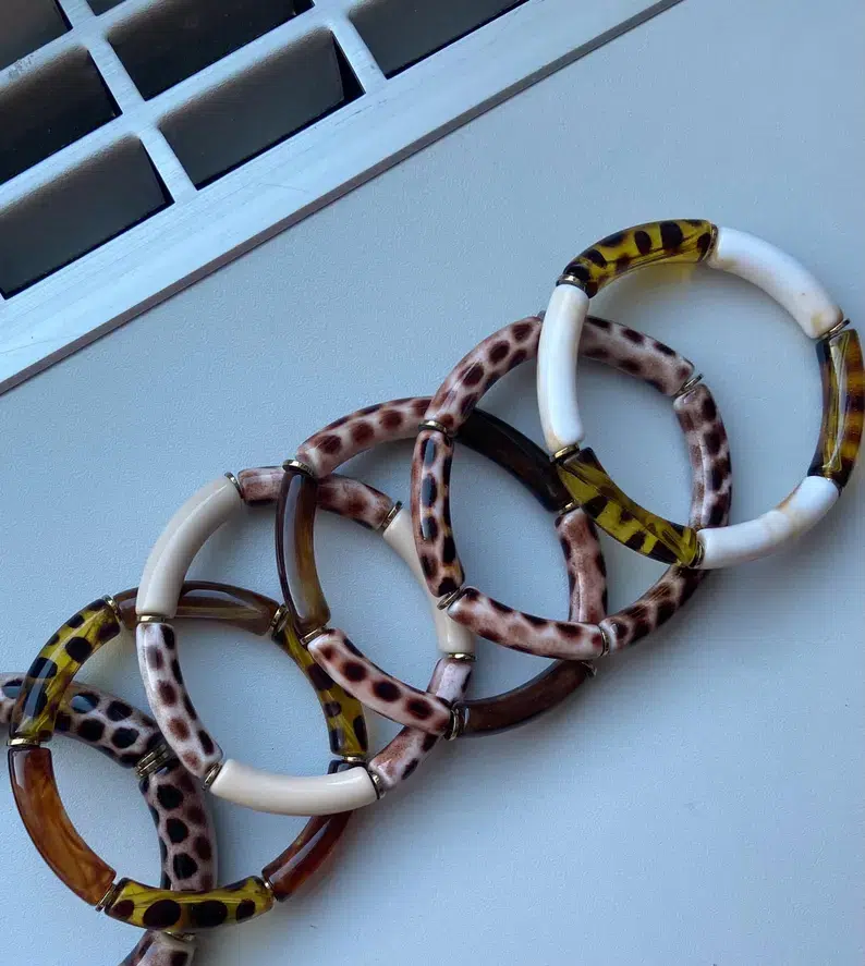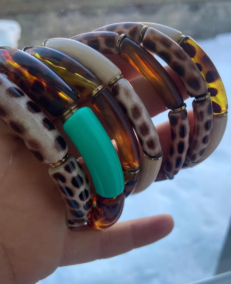 Bracelet élastique en perles de résine.