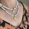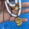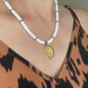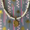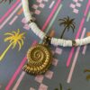 Collier en perles de coquillage heishi surfeur et médaille ammonite