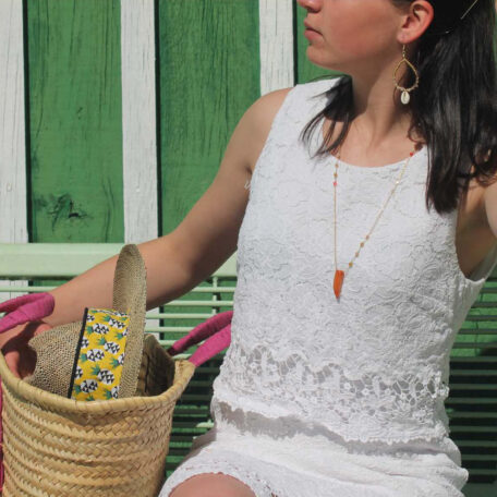 Je réalise une large gamme d’accessoires de printemps et d’été, customisés. Sacs, chaussures, pochettes, pour vos tenues bohème chic.