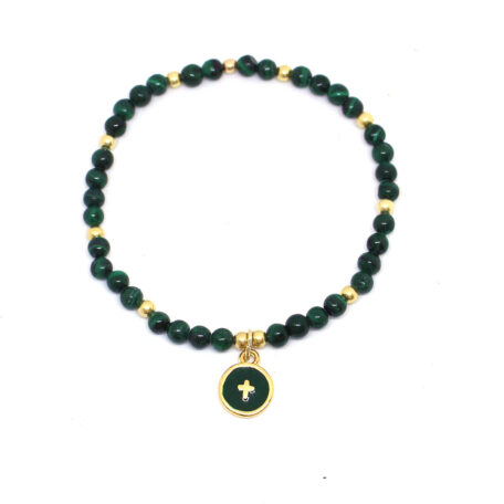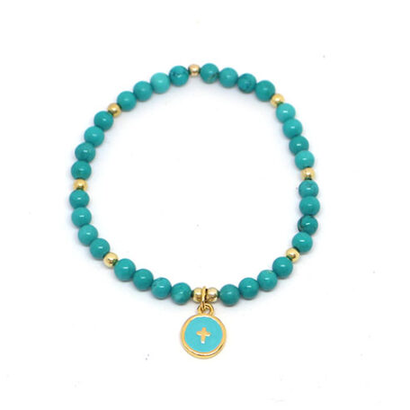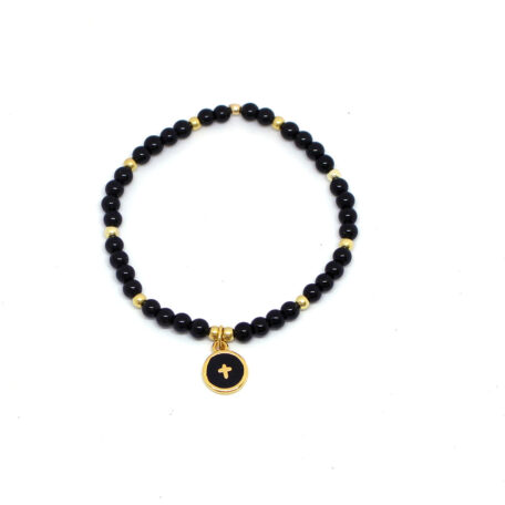 Bracelet élastique avec pierres de 4 mm et breloque émaillée croix doré fantaisie