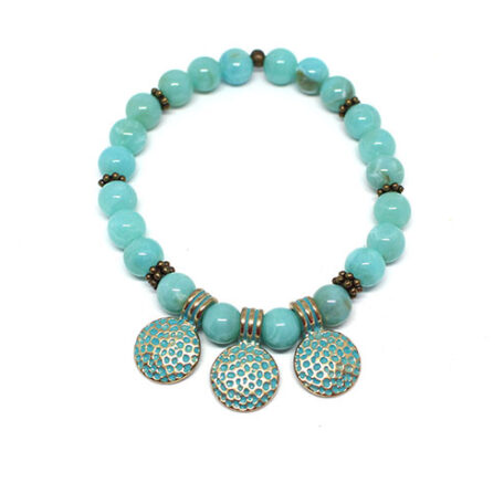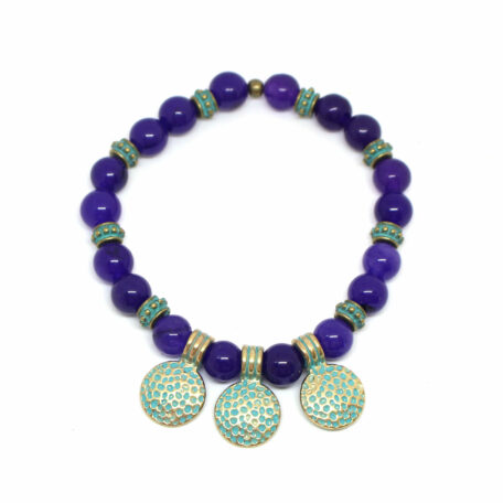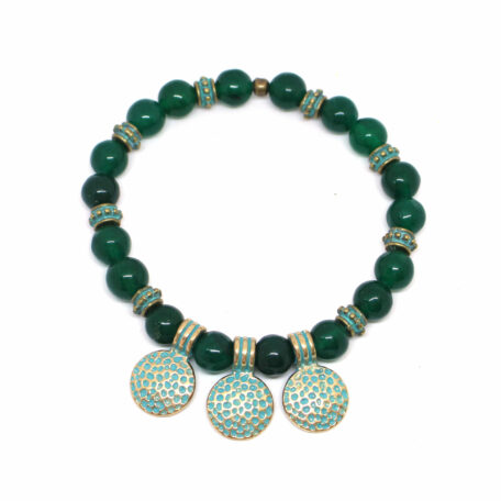 Modèle élastiqué d’inspiration ethnique avec perles de verre et médailles.