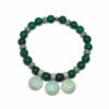 Le bracelet en verre tribal GANTHA est inspiré des bijoux tibétains classiques. Il emprunte son nom à la clochette indienne utilisée dans les rites hindous, car les petites médailles argentées du bracelet tintent au contact d’autres bijoux.
