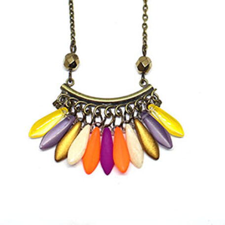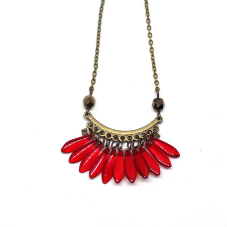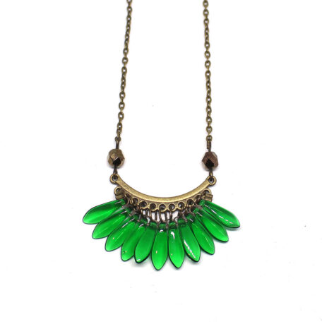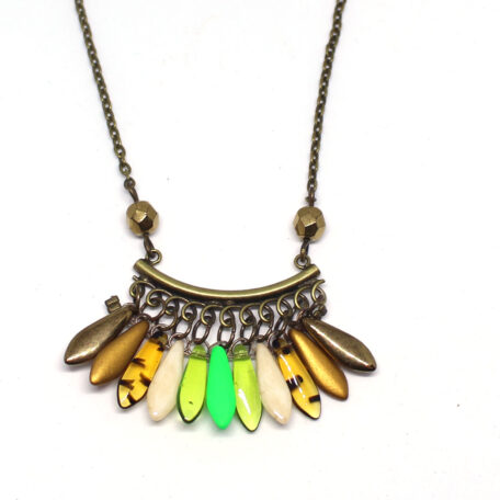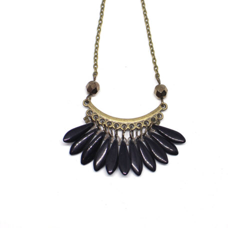 Collier ethnique chic et bohème en laiton bronze et perles en verre de bohème