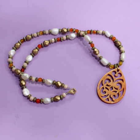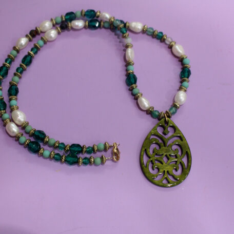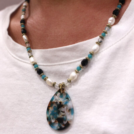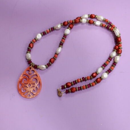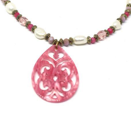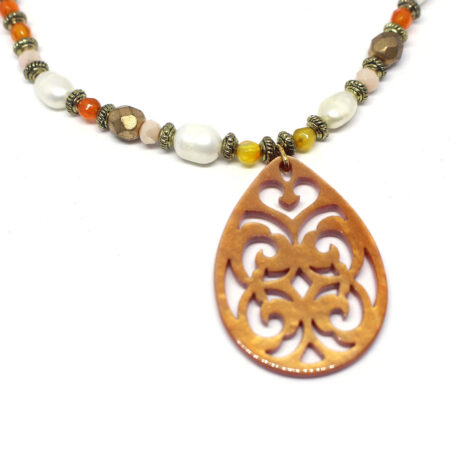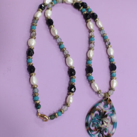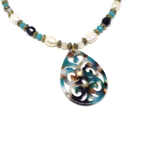 Pendentif en résine acétate joliment ajouré, motif Arabesque.