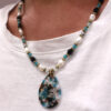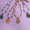 Le sautoir verre et pierres ARABESQUE mesure environ 30 à 35 cm (70 cm de tour total).